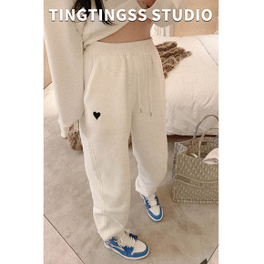 上新爱心收口加绒运动裤女2021新款宽松百搭显瘦加...