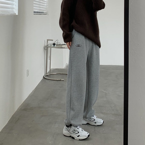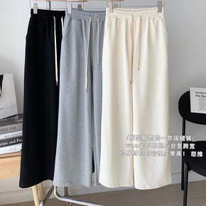 灰色运动裤女宽松束脚2021秋冬季高腰垂感显瘦直筒...