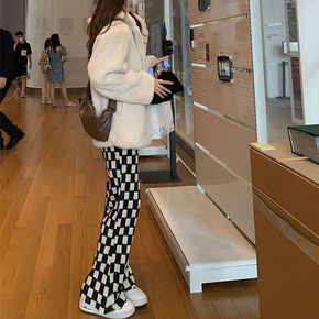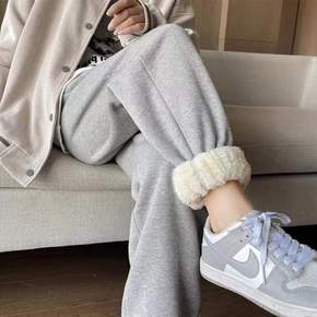 羊羔毛灰色运动裤女加绒秋冬宽松束脚裤子加厚休闲哈伦...