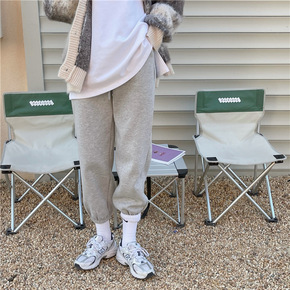 灰色运动裤女秋冬2020新款加绒宽松束脚九分ins...