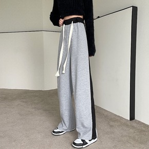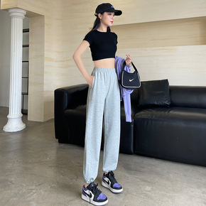 灰色运动裤女2022新款春秋宽松直筒显瘦卫裤束脚休...