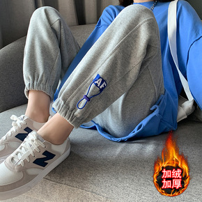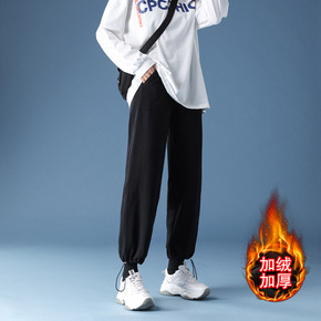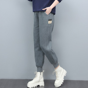 冬装新款韩版潮百搭宽松休闲哈伦卫裤加绒加厚运动裤女...
