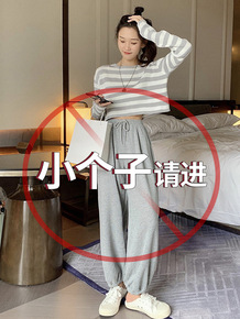 灰色运动裤女宽松束脚2021新款春秋季九分百搭秋冬...