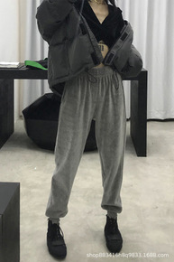2021秋冬季运动裤女韩版高腰金丝绒小脚休闲裤宽松...