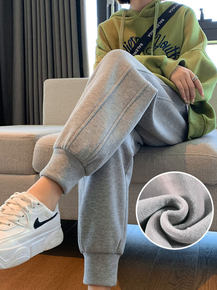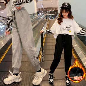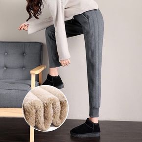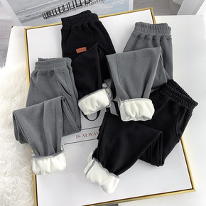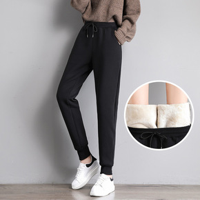 秋冬季加绒运动裤女羊羔绒裤子加厚加长棉裤宽松束脚保...
