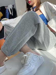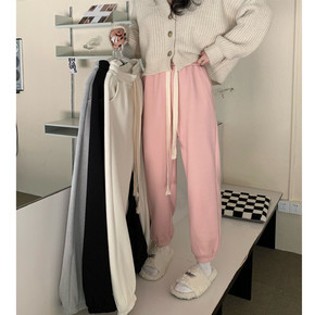 新款运动裤女灰色春秋薄款宽松束脚百搭灯笼显瘦加绒八...