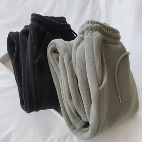 雪尼尔哈伦裤女垂感高腰秋冬季女裤2021新款宽松休...