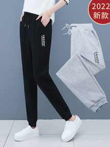 运动裤女春秋2022新款纯棉裤子春款女装休闲哈伦时...