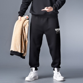 加绒加厚运动裤男冬季长裤子加肥加大羊羔绒保暖直筒男...