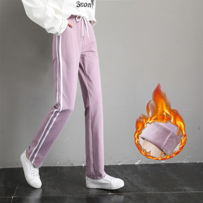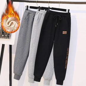 加绒加厚小脚裤运动卫裤女2021秋冬新款宽松显瘦休...