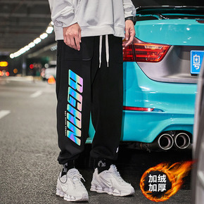 原创街头加绒休闲裤男2021年冬季新款幻彩潮牌运动...