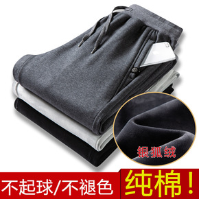 休闲裤男2021秋冬装加绒加厚双层保暖棉裤中年男士...