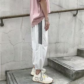 美式运动裤子女宽松百搭潮流休闲束脚裤2021夏季新...