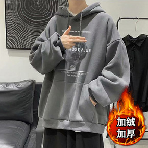 纯色LAZADA宽松套头插袋兜毛圈卫衣男士加厚绒长...