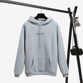 2021秋冬新款加绒连帽卫衣女宽松bf学院风拉链学...