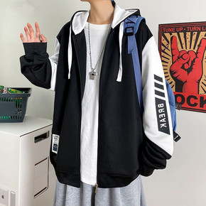 春秋季拼接设计感外套男士潮流撞色连帽卫衣青年休闲情...