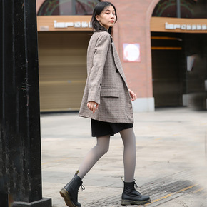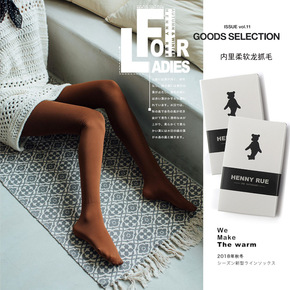 秋冬日系400D锦纶平板磨毛中厚保暖显瘦压力打底连...