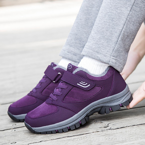 冬季加厚户外老人棉鞋女防滑保暖平底奶奶鞋加绒中老年...