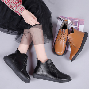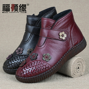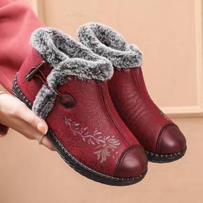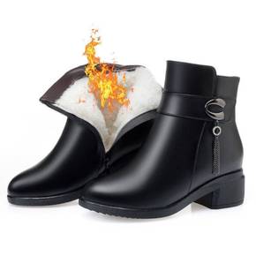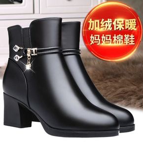 妈妈短靴【冬季新款】妈妈棉鞋软皮软底粗跟短靴中年女...
