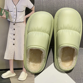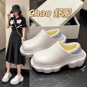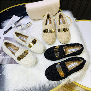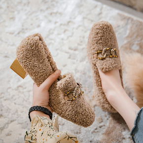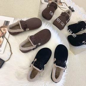毛毛女鞋冬外穿2022秋冬平底中跟羊羔毛加绒绵鞋懒...