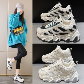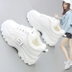 老爹鞋加绒小白鞋女2022年秋冬新款爆款小众厚底帆...