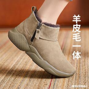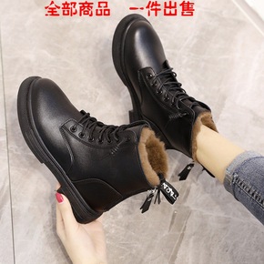 真软皮加厚绒雪地棉鞋22冬季新款加绒马丁靴女短筒平...
