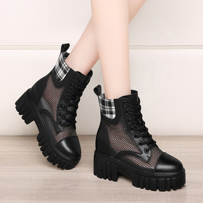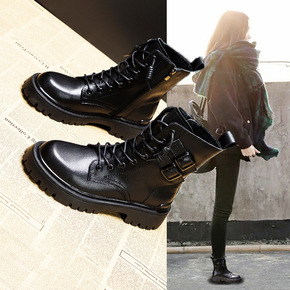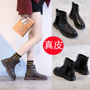 真皮马丁靴女2021新款厚底英伦风短靴女韩版拉链网...