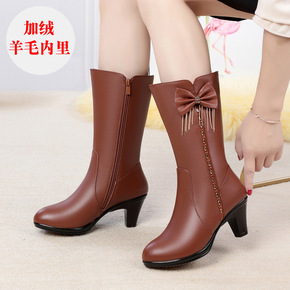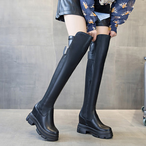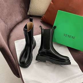2021秋冬季新款真皮烟筒靴女加绒短靴厚底长筒切尔...