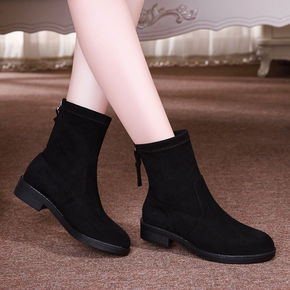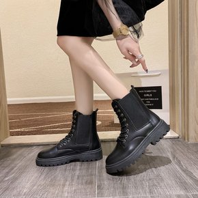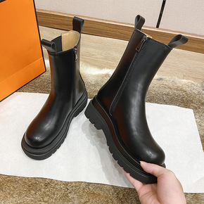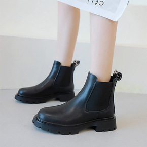 批发圆头厚底马丁靴2021秋季新款侧拉链纯色休闲女...