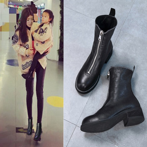 大幂幂同款ann真皮马丁靴女2021新款烟筒靴切尔...
