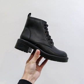 真皮橡胶鞋底黑色马丁靴女英伦风2021年新款秋季短...