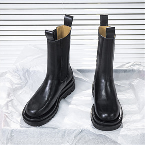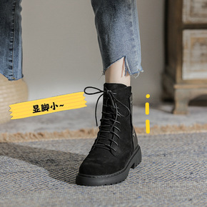 烟筒靴侧拉链中筒靴秋季新款网红靴子厚底马丁靴女英伦...