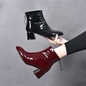 重磅巨推!ann复古暗黑风8厘米高跟真皮短靴网红圆...