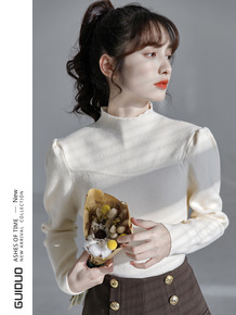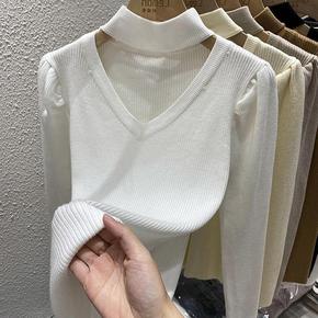 半高领毛衣女冬泡泡袖设计感小众2022早春新款洋气...