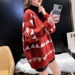圣诞红色半高领毛衣女2021新款韩版宽松慵懒风秋冬...