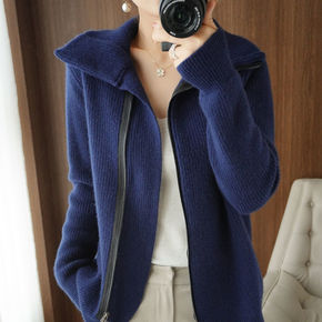 韩版百搭长袖加厚毛衣高领拉链开衫针织女外套打底上衣...