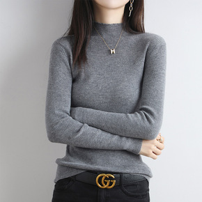 2022秋冬新款纯色薄款羊毛衫女半高领修身100纯...