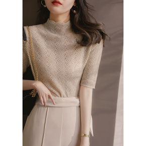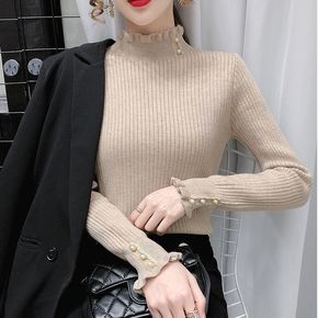【歌铭】高领毛衣女套头2022春季新款坑条修身内搭...