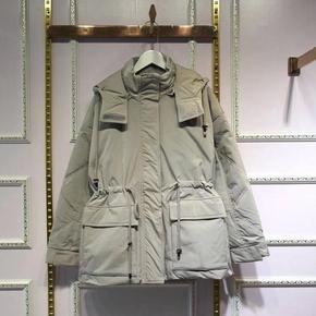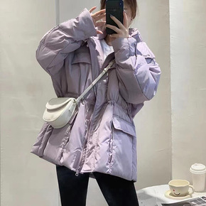 东大门派克羽绒服女2020新款中长款魔术贴加厚收腰...