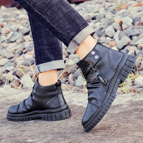 马丁靴男款英伦风皮靴冬季加绒棉鞋男士工装中高帮皮鞋...