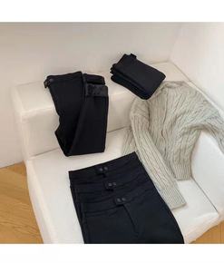 小宅小猫魔术裤12.0暖绒版高腰外穿紧身黑色小脚打...