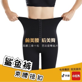 束腰排扣芭比裤女秋冬新款收腹鲨鱼皮打底裤女外穿紧身...