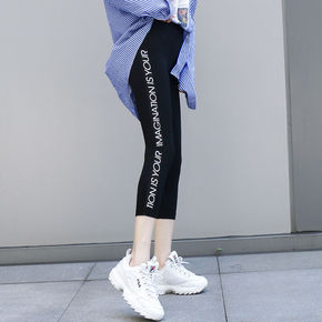新款莫代尔黑高腰打底裤九分裤女外穿春秋冬大码提臀瑜...