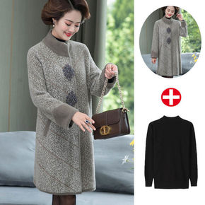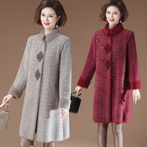 洋气妈妈秋冬装水貂绒大衣中长款40岁50中老年女加...