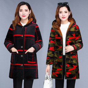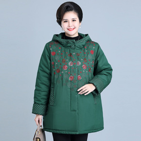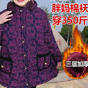 中老年女装冬加肥棉衣妈妈装加绒加厚棉服老年人中长款...