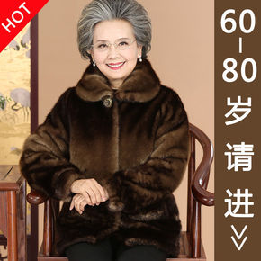 胖妈妈秋冬装水貂绒外套女新款洋气中老年大码加肥羊绒...