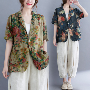 .大码小西装外套女薄款2020春款韩版宽松胖mm时...