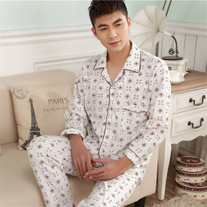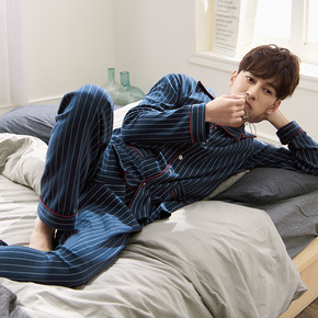 2018春季新款长袖睡衣开衫男士青年加肥加大家居服...