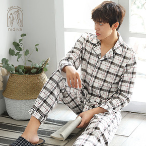 妮狄娅睡衣男士春秋纯棉长袖男式家居服全棉格子秋冬款...
