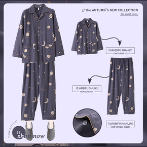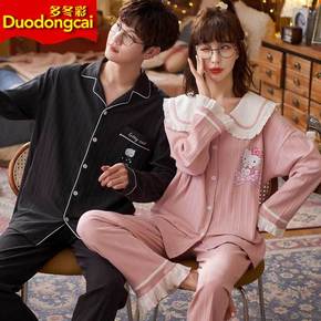 情侣睡衣春秋季棉质长袖韩版宽松开衫翻领家居服女加大...